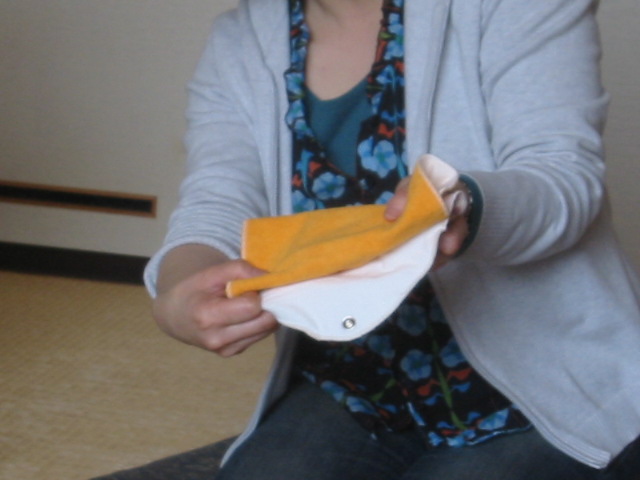 今日はお試し用に手作り布ナプキンを持参してくれました。