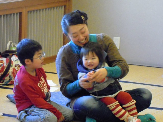 の掛け声とともに、子どもをお膝に乗せて、右に左に揺れます