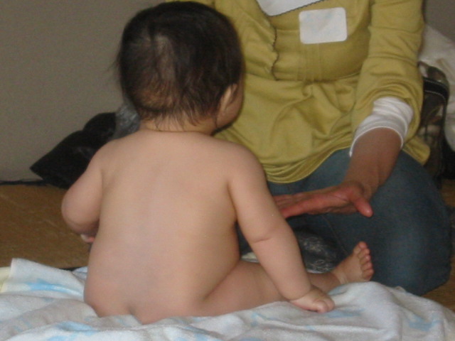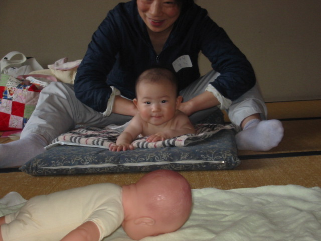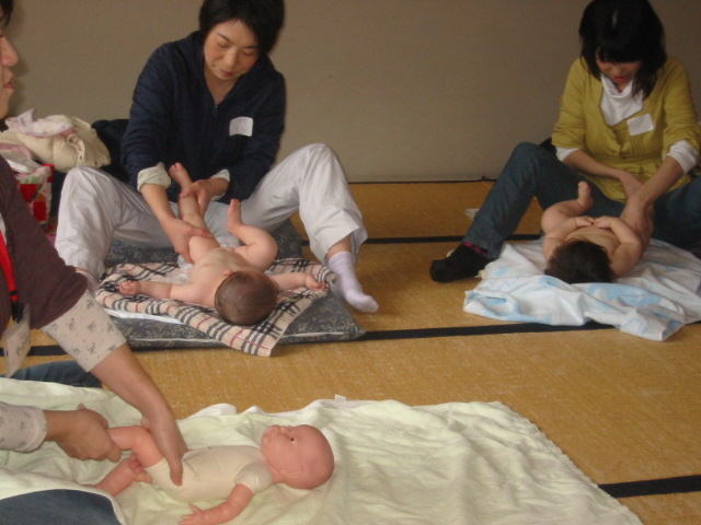 今日はスムーズに進行したので時間に余裕もあり、症状別のお手当法について紹介した後は、オイルを使っての、ママのヘッドマッサージも紹介しました。