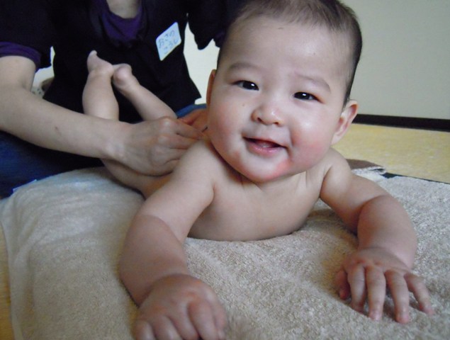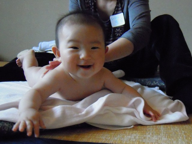 初回は泣いたりぐずったりのベビちゃんも、今日は最後までごきげんにマッサージをさせてくれていました