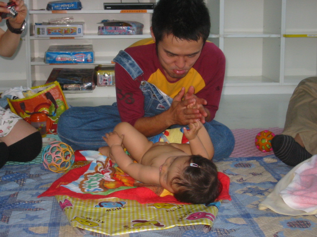 イクメン講座のひとつであるパパのベビーマッサージに