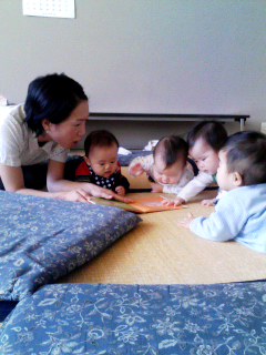 でも、6,7,8ヶ月のお子さんたちもじーっと絵本を見つめてくいついて(?)集中して(!)見入っていました。