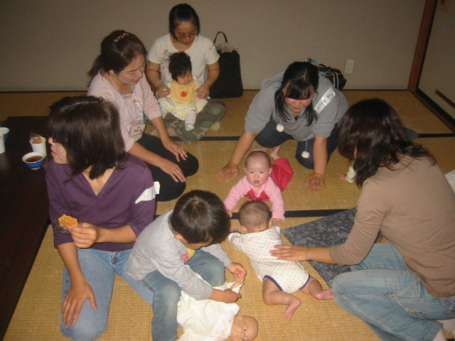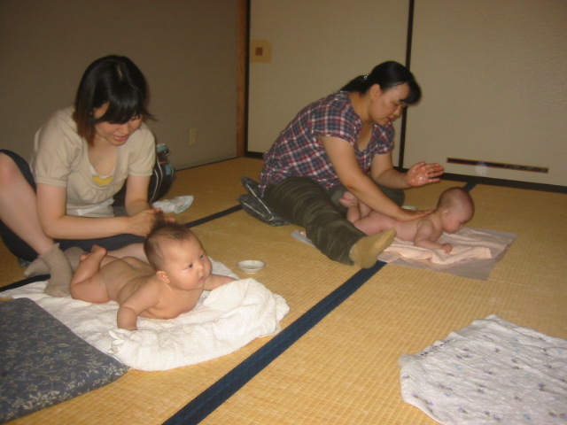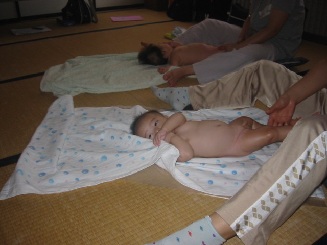 デモンストレーションを終え、マッサージをはじめると、ぐずる子、ニコニコ顔の子、それぞれでしたね。