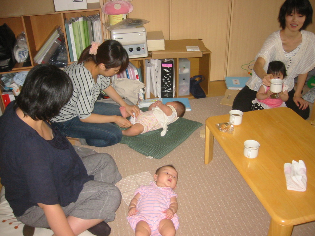 お茶タイムには、ママ同士の情報交換や、