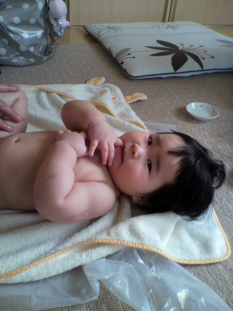 初めてのベビちゃんはゴニョゴニョ言いながら途中でちょっと泣きだして、