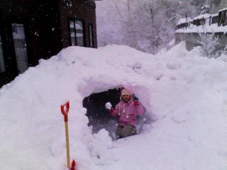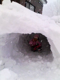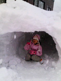 娘たちのかわいいお約束のおかげでできたかまくら。